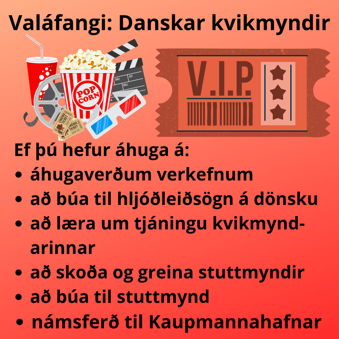 Valáfangar í bóklegum og/eða skapandi greinum: Allir áfangar nema íþróttir, leiklist og verklegir áfangar.