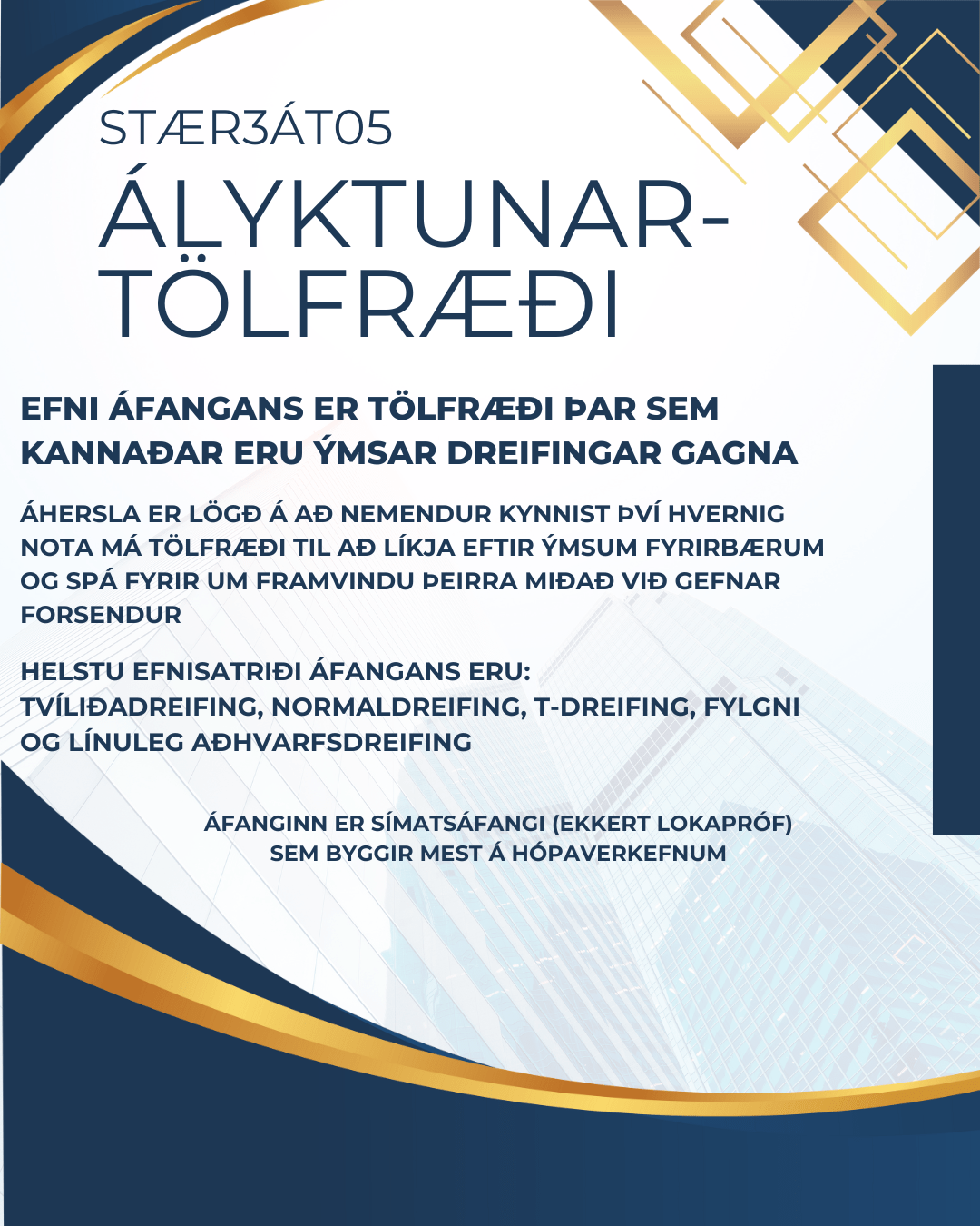 STÆR3ÁT05 | Stærðfræði – ályktunartölfræði |