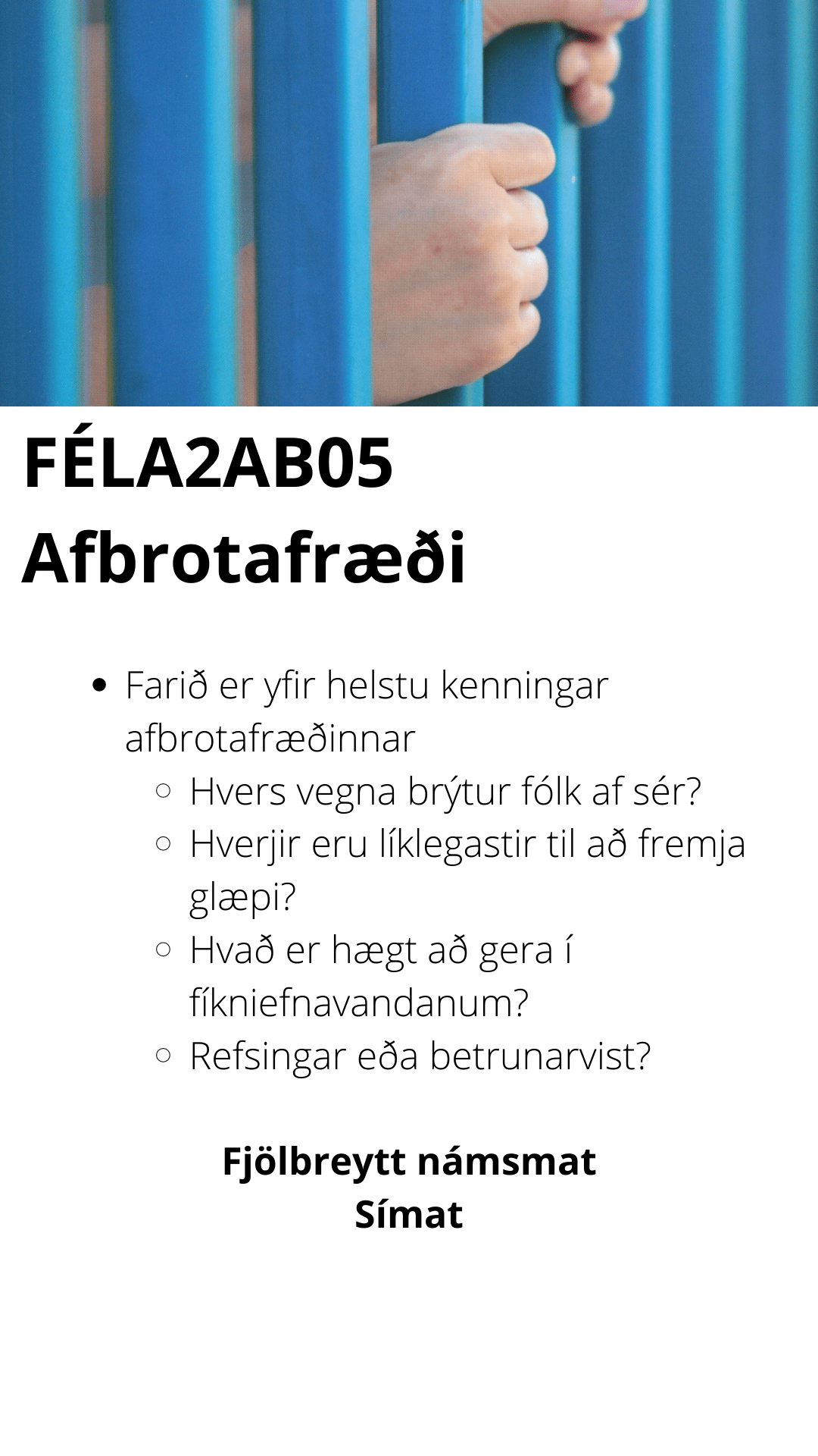 | FÉLA2AB05 | Félagsfræði – afbrotafræði |