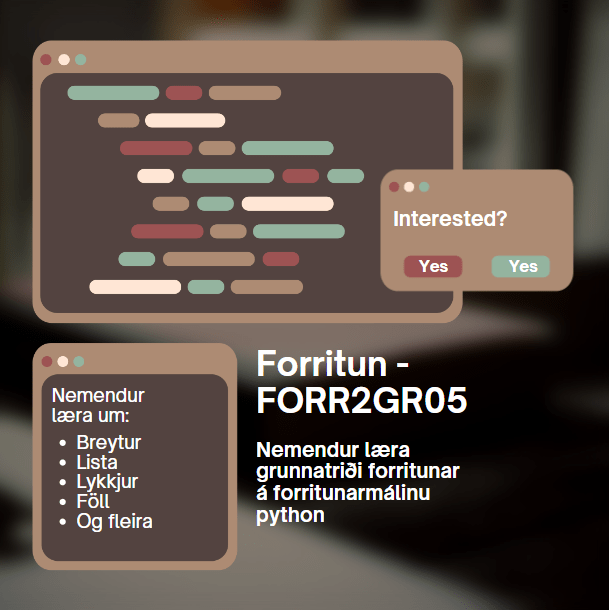 Námsframboð á haustönn 2026 verður kynnt í skólanum miðvikudaginn 4. mars kl. 11.45 – 12.30.