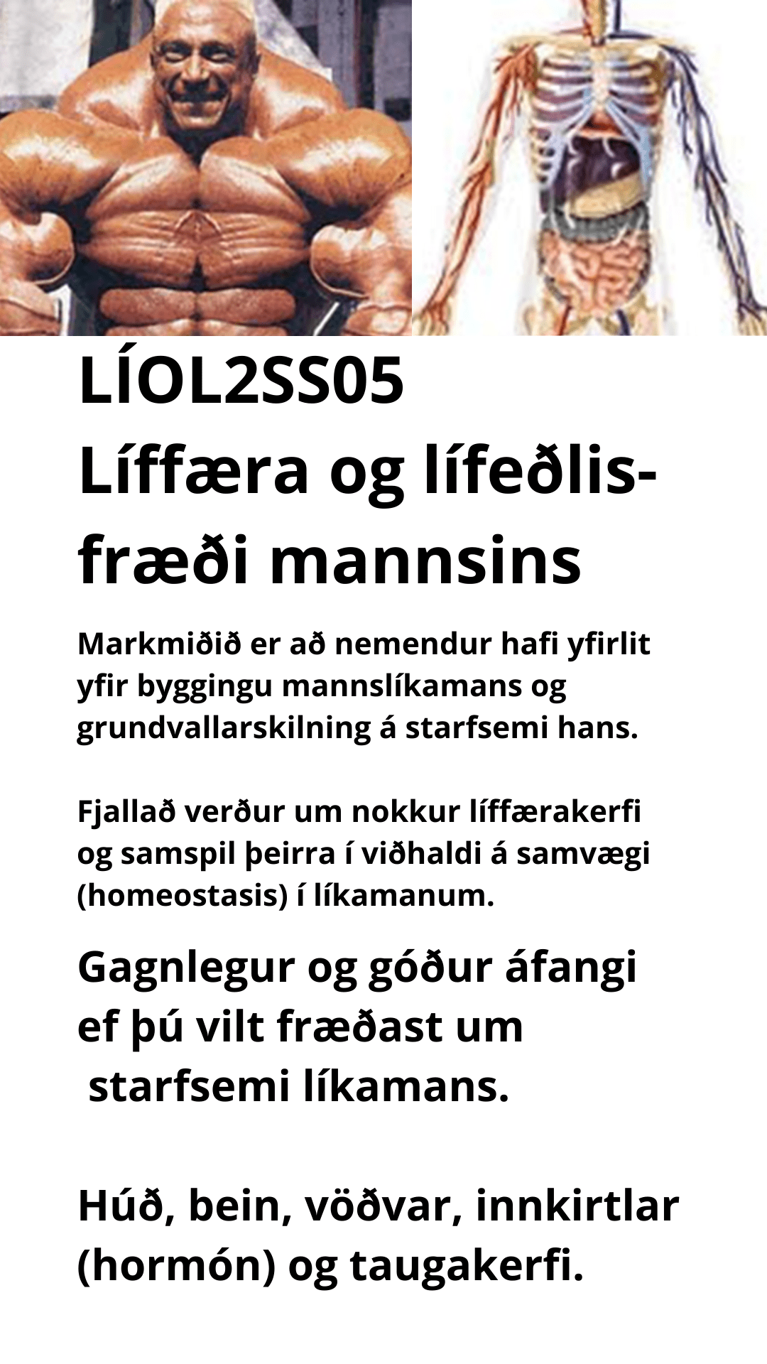 | LÍOL2SS05 | Líffæra- og lífeðlisfræði |
