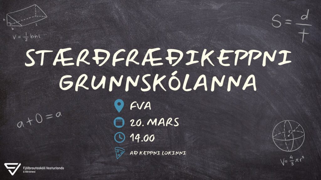 Nemendur í efstu bekkjum grunnskóla á Vesturlandi keppa í stærðfræði í FVA föstudaginn 20. mars kl 14. Öllum þátttakendum er boðið í pizzu að keppni lokinni.